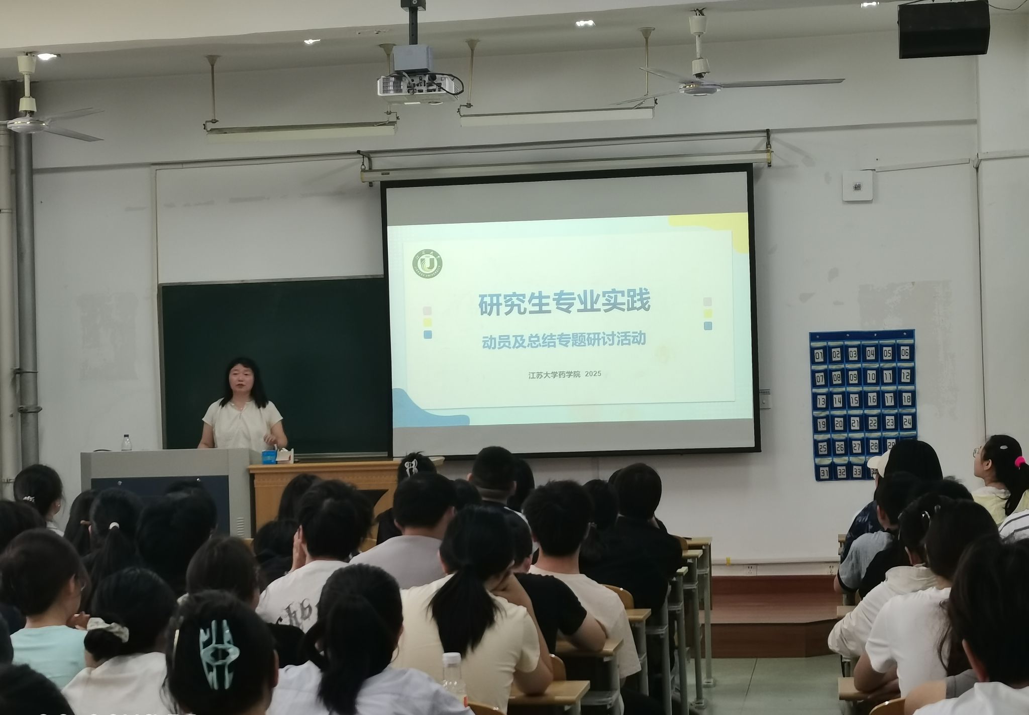 专业实践是全日制专业学位硕士研究生必要的培养环节,也是卓越工程师建设的载体和必要途径。为保证我院研究生实践教育质量,根据《江苏大学全日制专业学位研究生专业实践管理实施细则》(江大校〔2020〕245号)和《关于做好2025年度全日制专业学位研究生专业实践安排的通知》的要求,药学院日前召开了研究生专业实践专题研讨活动,学院领导、研究生导师代表以及2023级、2024级专业学位硕士研究生参加了此次活动。